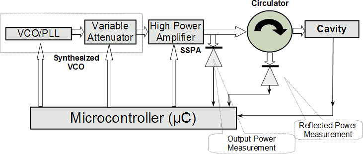 Custom-made, computer-controlled solid state power sources for microwave power applications.