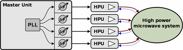 Microwave power units can be used to deliver power of the same frequency but with individual amplitudes and phase shifts between, computer controlled from a single Master Unit.