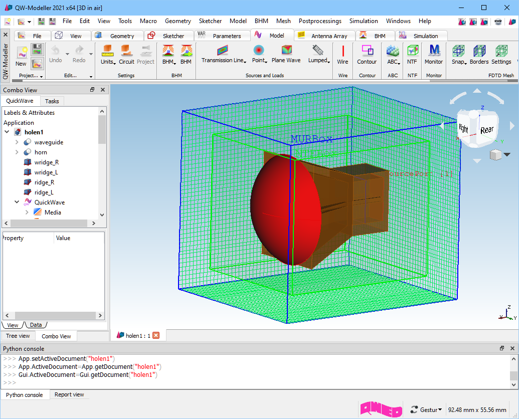 Horn antenna – step by step preparation process in QW-Modeller and simulation in QuickWave: