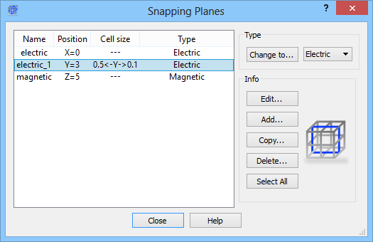 Mesh refers to the set of FDTD cells. These cells of cubicoidal (or cubicoidal cut by a plane) shape have the basic size defined through the Mesh Parameters dialogue. However, the actual cell size may be modified downwards by the software to fill the area between mesh snapping planes with an integer number of cells. Mesh snapping planes are either introduced explicitly by the user or forced automatically by the QW-Editor (for example, at horizontal boundaries of metal elements).