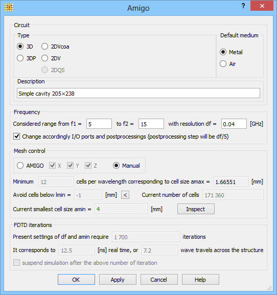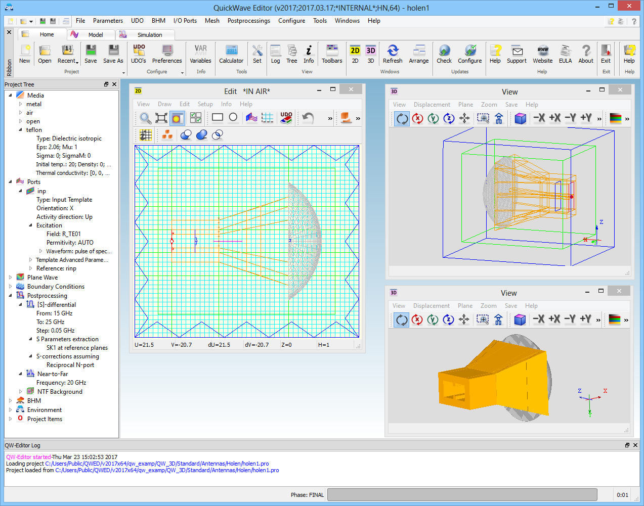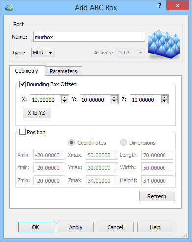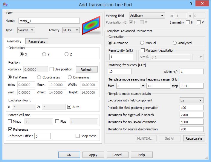 The I/O ports, Mesh Snapping Planes, Absorbing Boundary Conditions and NTF can be introduced in a manual way or using special UDOs available in the UDO library.