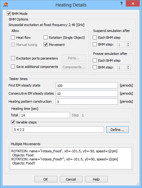 Basic Heating Module allows for microwave heating analysis including loads rotation and translation, frequency tuning, heat flow and material parameters modification as a function of dissipated power.