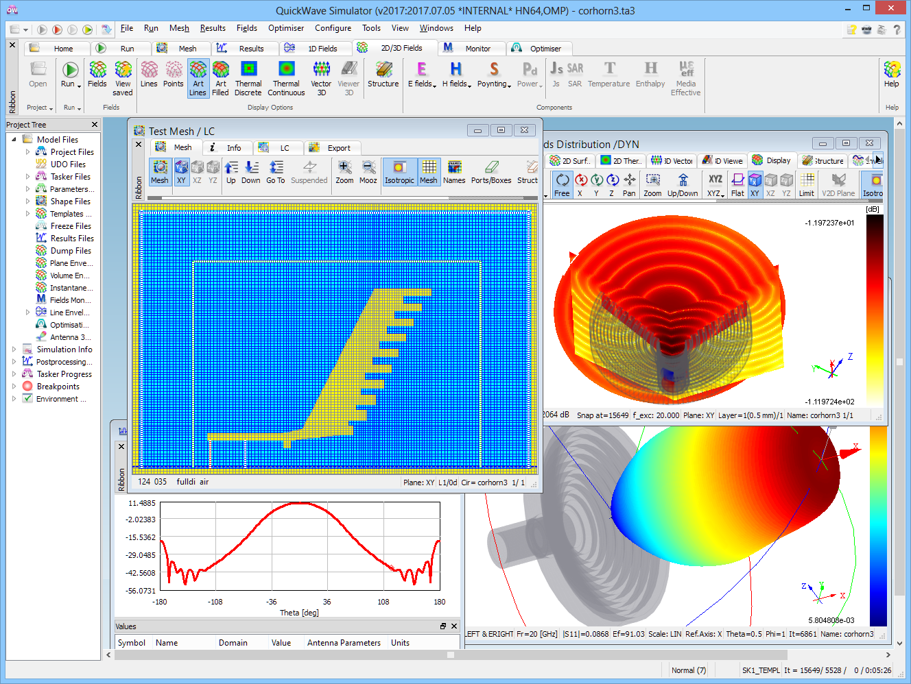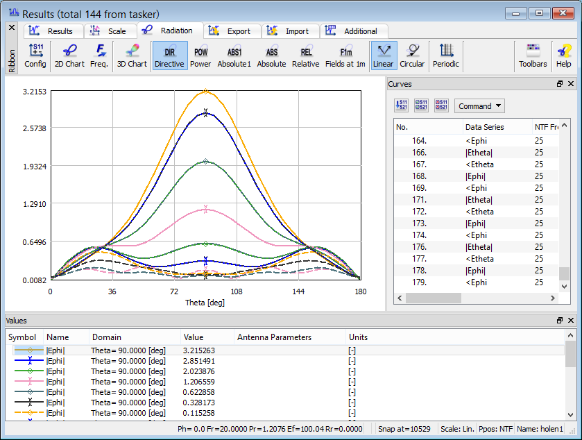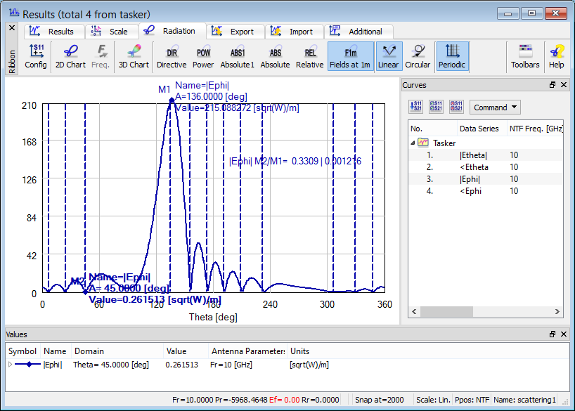 - Near To Far transformation at Fixed Angle (NTF Fixed Angle, Antenna Fixed Angle or NTFFA) results (only in QW-3D)