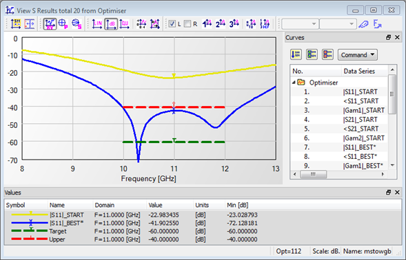 Information about the optimisation process is displayed in the Log window. In separate window Goal Function progress can be observed.